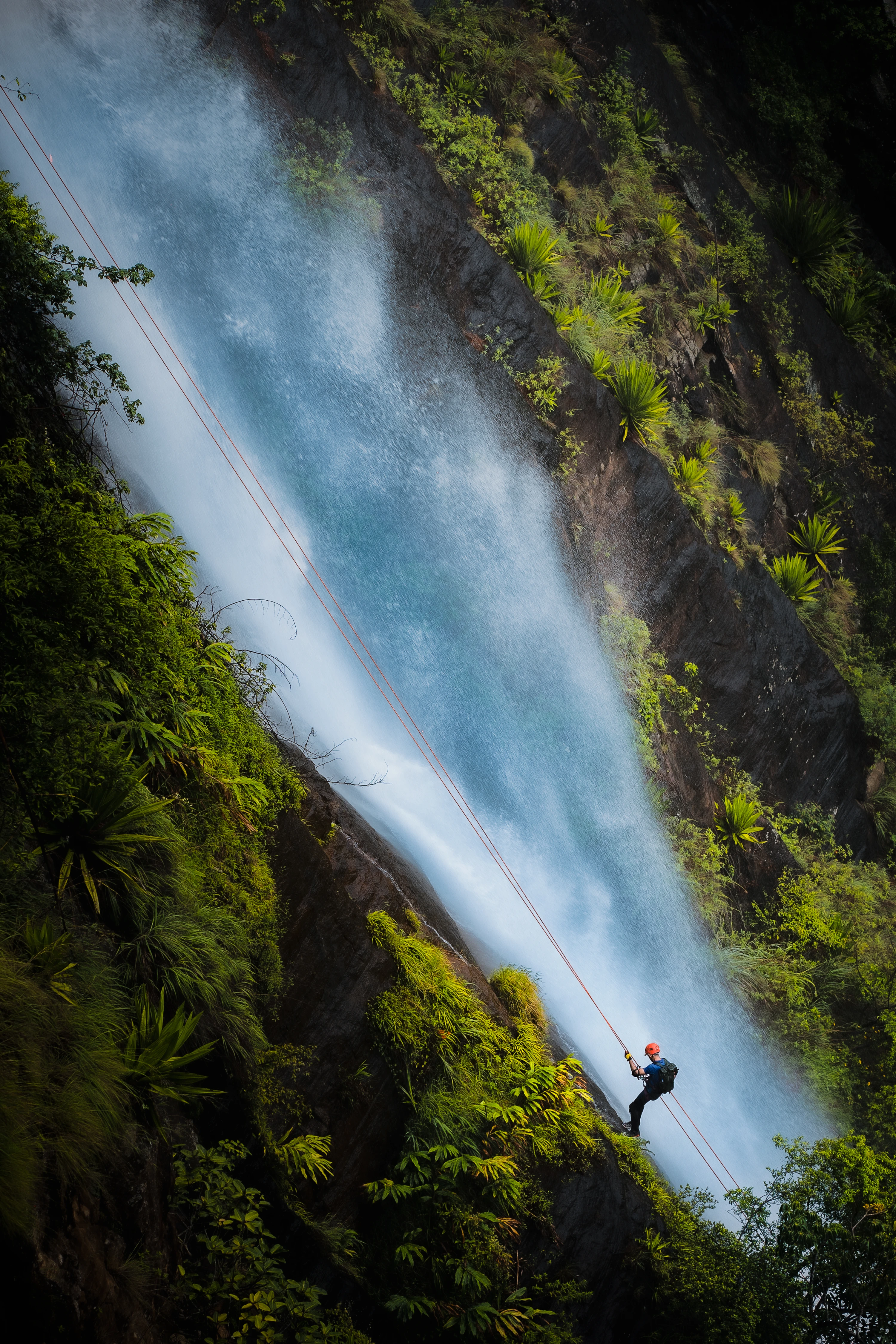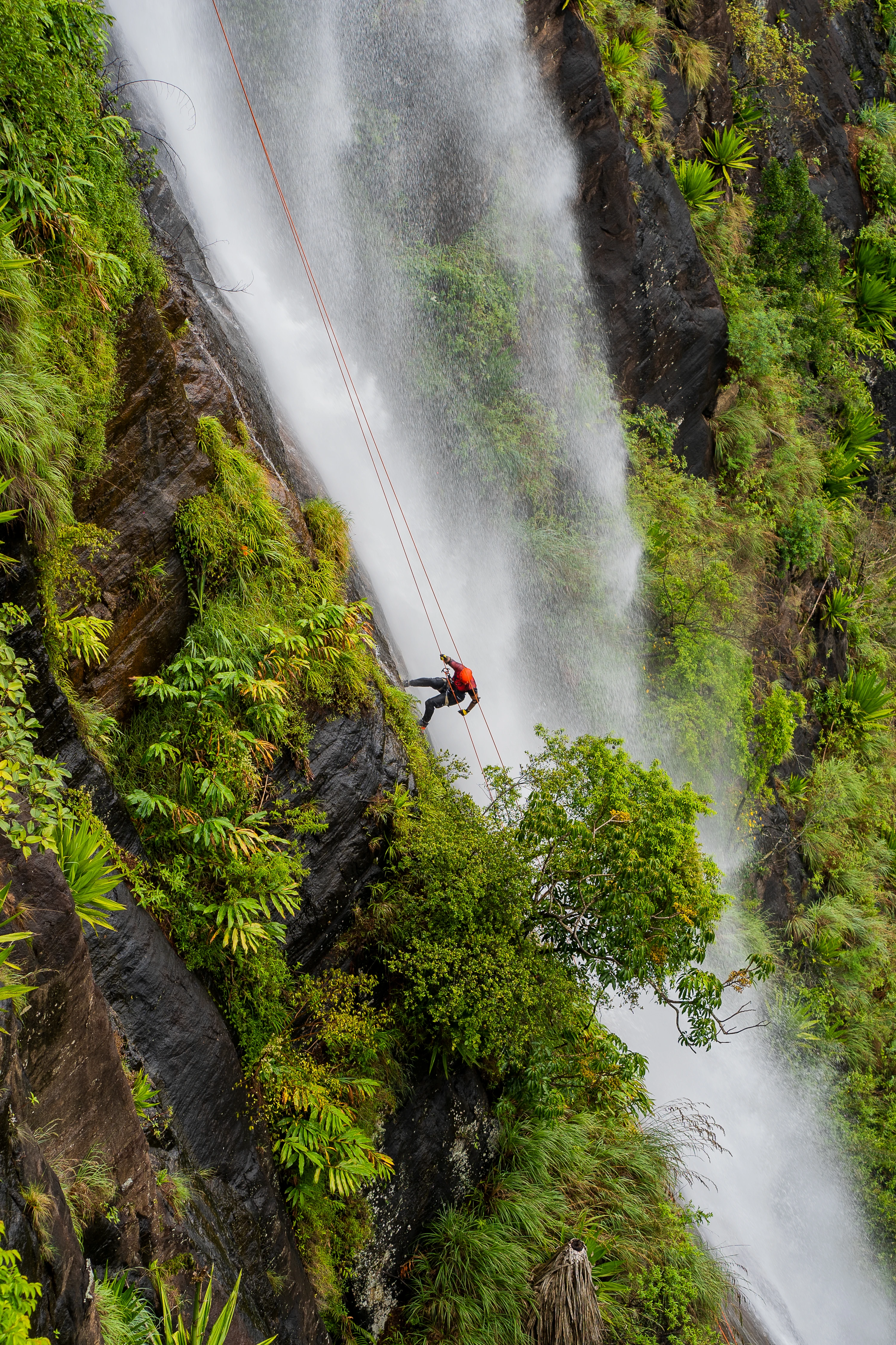 - Abseiling instruction and descent at Bambarakanda Falls.