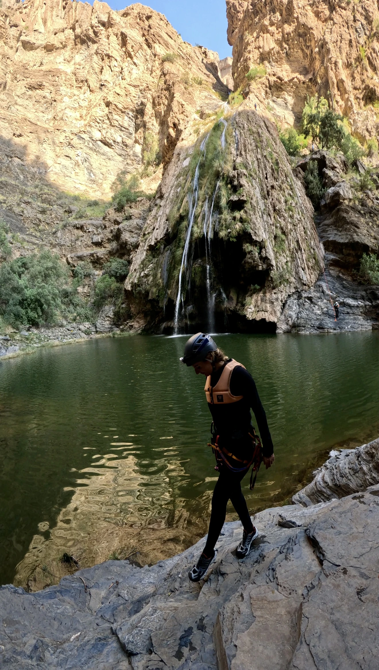 Over the course of a full day, you will face 19 abseils, ranging from 25 meters to an awe-inspiring 120 meters, each one bringing you deeper into this dramatic gorge. With every descent, the canyon unfolds into breathtaking waterfalls, turquoise pools, and soaring limestone walls. This is not just a trip—it’s an expedition into one of Oman’s wildest landscapes.